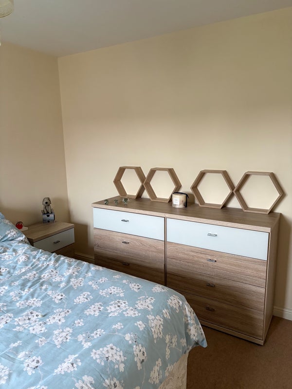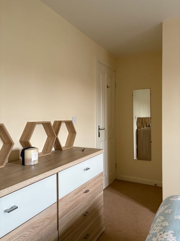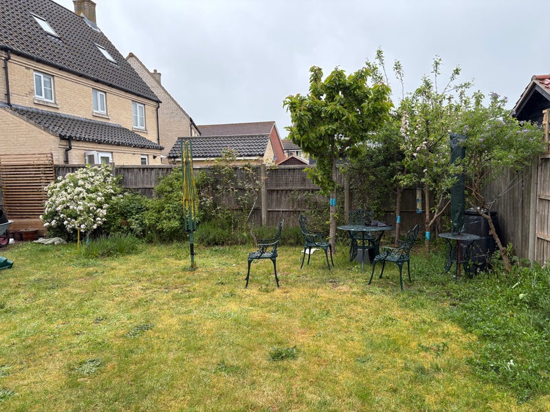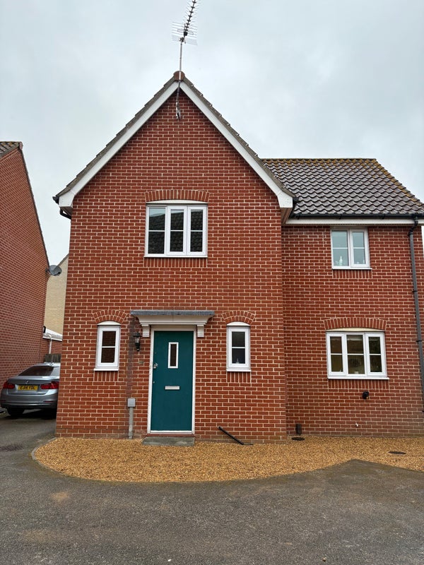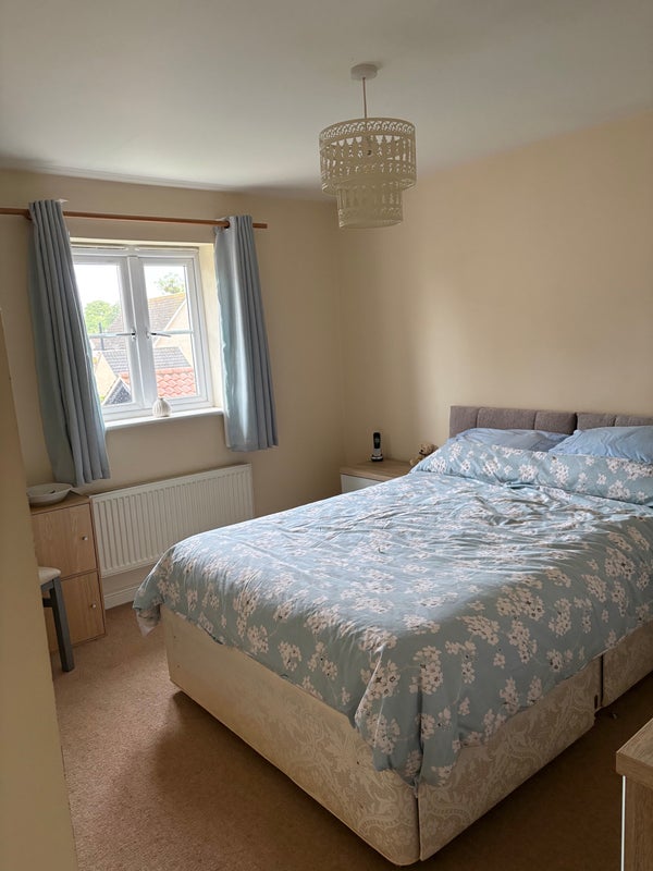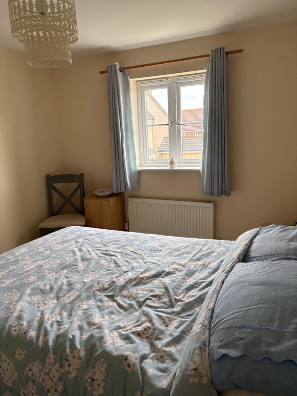 Detached house at end of cul de sac, built November 2016. Good sized sunny garden and garage conversion in progress with electrics for hobby/work area. Peaceful surroundings. Bedroom (2.82 x 3.52) is adjacent to spacious tidy bathroom. Kitchen and living room communal areas, although landlord away. Parking to front and side of property