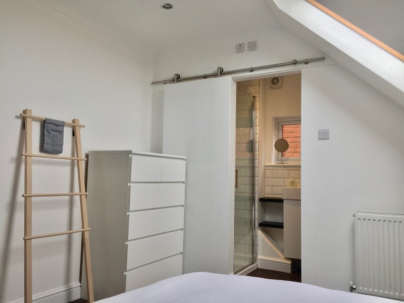 This modern look studio space is offered to a single professional. It encompasses a kitchen/dining/living area with a separate bedroom space and en-suite. It is furnished, with use of a washing machine located on the ground floor in my kitchen.