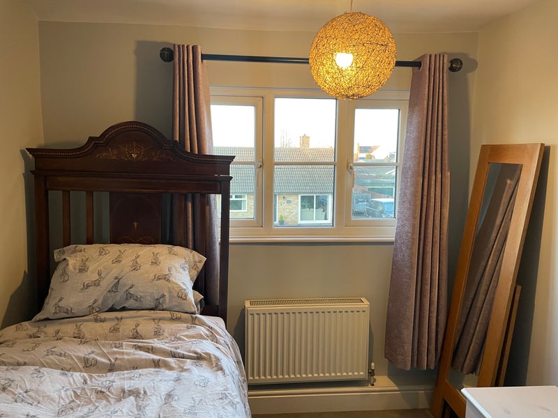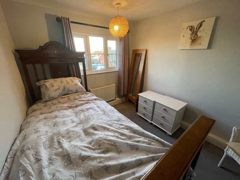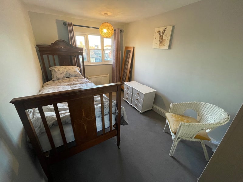 A furnished double room with a single bed, providing more living space and comfort, available to rent in a large 200 year old house located in Glemsford.