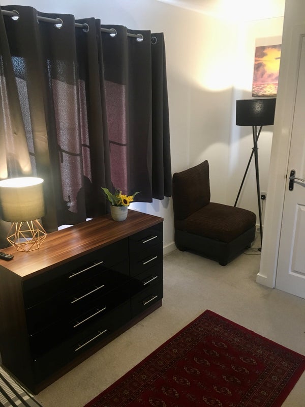 End of terrace house in a quiet area of Great Cornard. Would suit single working professional. Parking space. Large room with plenty of storage. Wi-Fi included. Smoke and Co alarms. No smoking (unless outside) vaping ok.