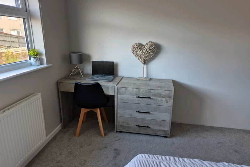 Fully furnished: Double bed, wardrobe, chest of drawers, desk and chair