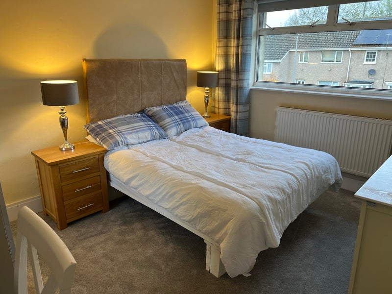 Double room available in Haverhill, newly decorated, 3 New wardrobes, 2 bedside drawers with 2 Table lamps. The room has a desk and chair (Optional). This room has a double mattress and headboard.