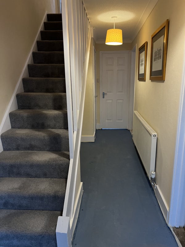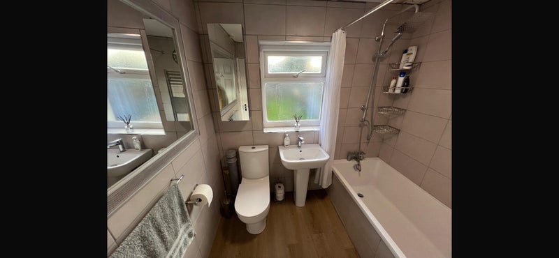 We have a shared bathroom with a rain shower head over the bath. The kitchen has recently had a refit with new appliances and a large dining table. The downstairs WC is fitted with the washing machine and tumble dryer.