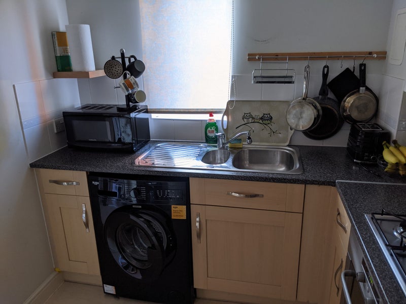 Double en-suite room available for renting in a two bedroom flat near the train station. The flat will be shared with a lady. She has her own room and toilet.