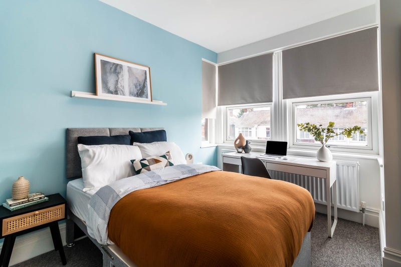 We have an airy, stylishly decorated room with everything you need to move straight in including desk zones,