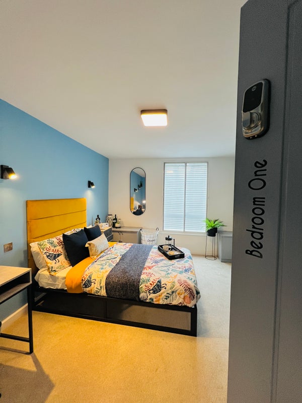 Fully furnished: wardrobe, drawers, mirror, bedside tables, desk & ergonomic chair