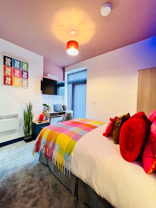 Every bedroom features stylish panelling and comes with its own spacious en-suite bathroom with heated towel rails. Rooms are furnished with plenty of storage, large desks and 42 inch wall hung TVs. All tenants have their own individual fridge/freezers and designated kitchen cupboard spaces.