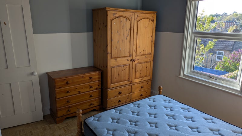 Room 1 has a double bed, wardrobe & chest of drawers.