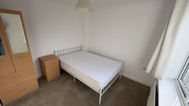 The room is a double room and is fully furnished including double bed and mattress, wardrobe, bedside cabinet, chest of drawers etc. The room has the use of the shared bathroom and a downstairs cloakroom.