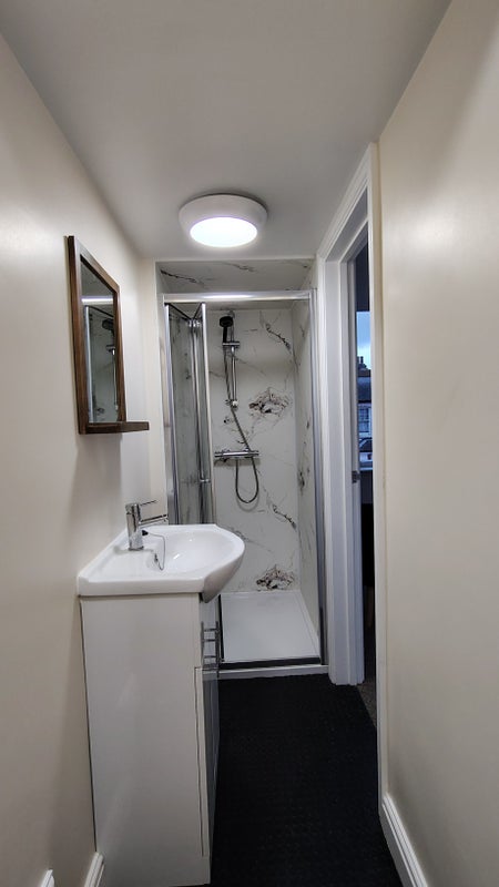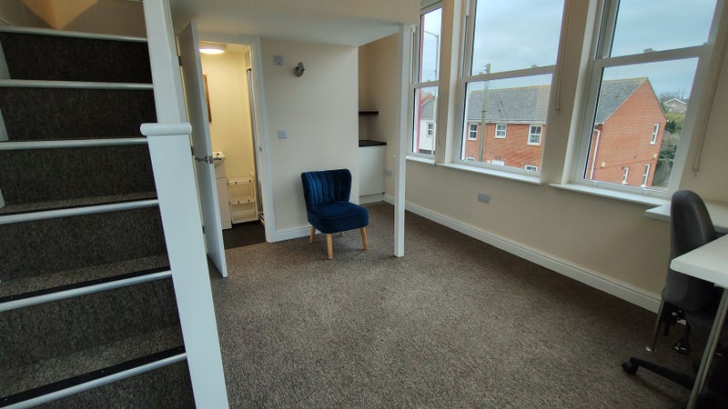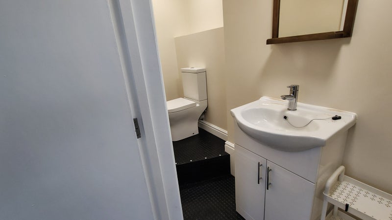 We have a large en-suite room with elevated bed available in a new house conversion in Leiston. It is fully furnished and is equipped with independently controlled heating. There is a small food preperation area with space for kettle, toaster and a small microwave. The room contains a fitted desk with TV point and ethernet. A personal wi-fi router is included to ensure best possible wif-fi performance. The built in wardrobe and storage cupboard provide ample storage with hanging space. The double bed has a high quality mattress,