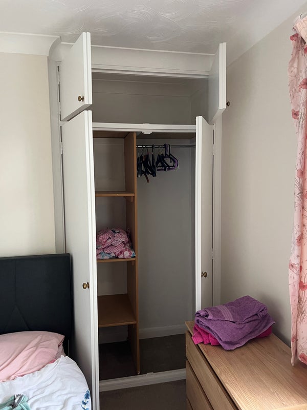 The room comes with desk, chest of drawers and built in wardrobe.