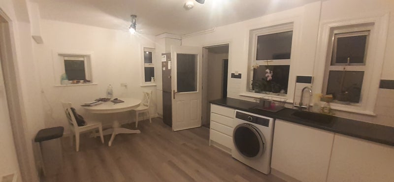 Shared kitchen, bathroom and living space
