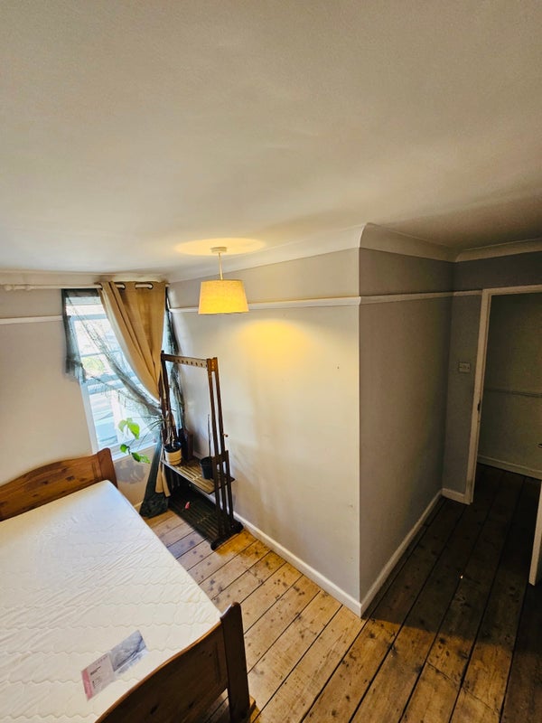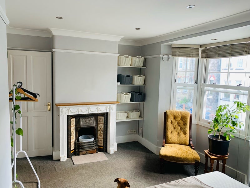 Large double room with high ceilings and sunny bay window