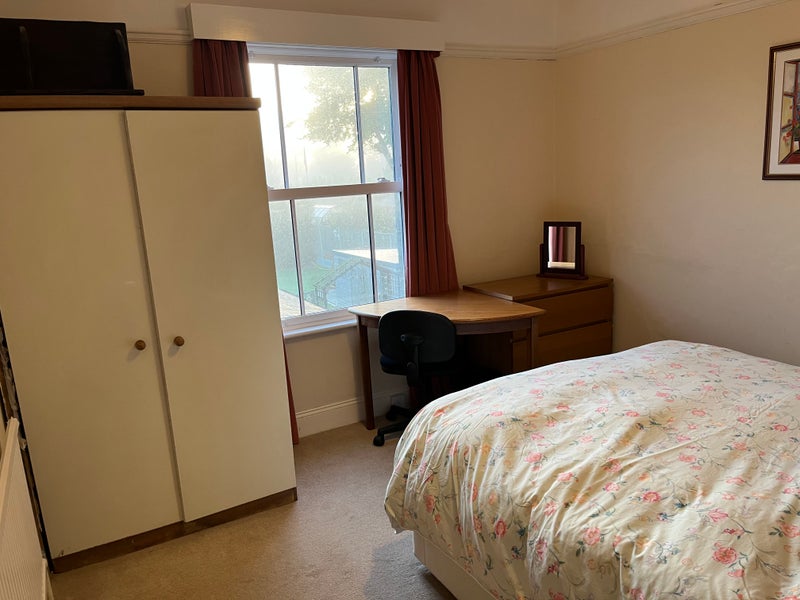 Beautiful spacious, sunny 4 large bed roomed character house in The Avenue, Pakefield, Lowestoft NR33 7LL near the beach. Bedrooms have a key lock, Dunlopillo latex adjustable King-size divan bed with upholstered headboard, curtains with blackout linings, wardrobe, chest of drawers, desk and comfortable swivel office chair, TV aerial, Ethernet cable and Wifi. Use of lounge, piano room, conservatory, dining room, kitchen, cloakroom, study, large garden.