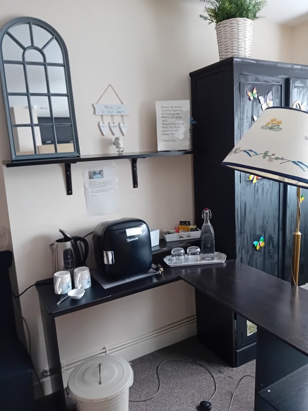 Well presented private large ground floor double room, all bills included, use of dining room if required, use of small kitchenette with counter top fridge, air fryer, microwave and small grill to prepare a simple meal or snack, Sorry No Use of washing machine but laundrette in town, desk and chair, wardrobe and bedside cabinet, all bills plus Wi-Fi included, good sized shower in room and private toilet across the hall, other overnight/ holiday guests (adults only) in upstairs quarters, no pets allowed please as situation would not suit.