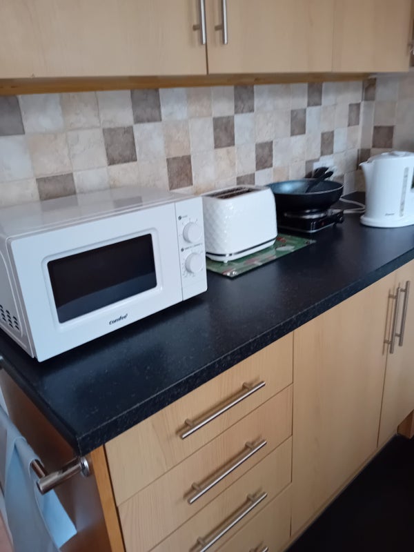 Laundrette available in town, ironing facilities in house.