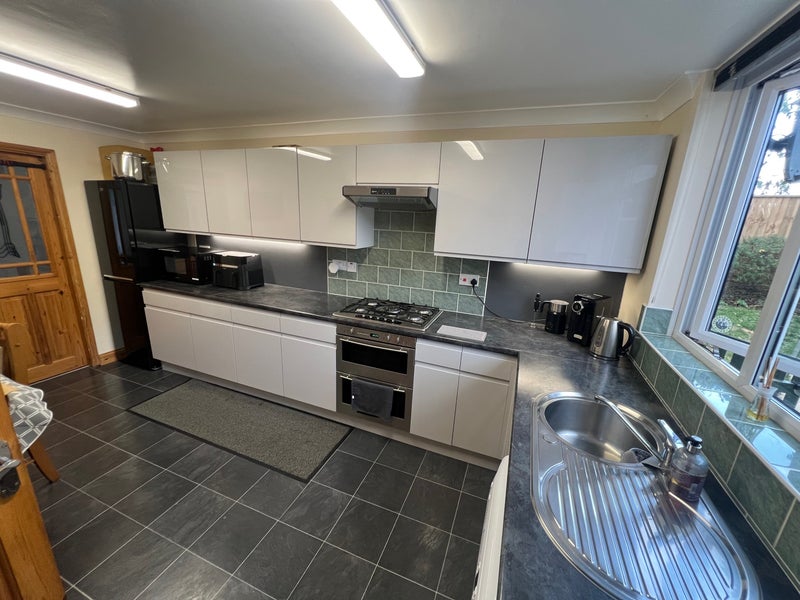 luxury large double bedroom, with comfy leather armchair, very spacious double wardrobes with drawers and under bed storage boxes, you’re very own fridge, new kettle and toaster in the room. Your own cupboard in the room containing plates, blows, cutlery, chopping board cups and glasses all brand new. Brand new bedding, cushions, blankets and throws.