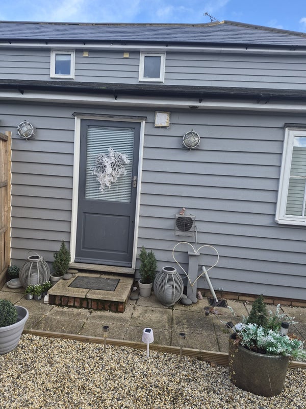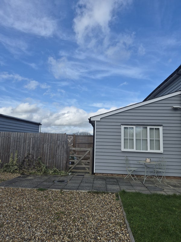 Self contained 1 bedroom annexex with courtyard garden and parking for 2 cars. Kitchen, walk in shower and bathroom, lounge and mezzanine level bed area. All bills including Wifi included.