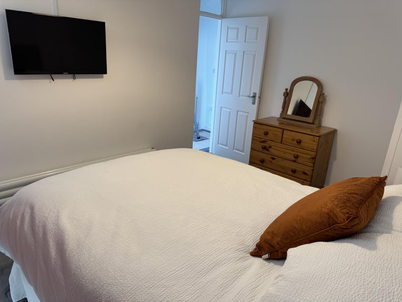 The room has a double bed, TV, Wardrobe & chest of draws. We share the bathroom that has an over bath shower, Kitchen with extra space in the utility & conservatory. The lounge has a large TV.