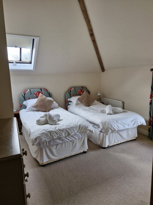 This fully furnished two bedroom cottage is located in Yoxford, 20 minutes from Sizewell. Each bedroom has ensuite facilities, one with a shower over the bath, WC and hand basin, the other a walk in shower, WC and hand basin.