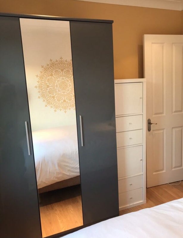 The room has a double bed, double wardrobe and storage cabinet. Bedding not supplied.