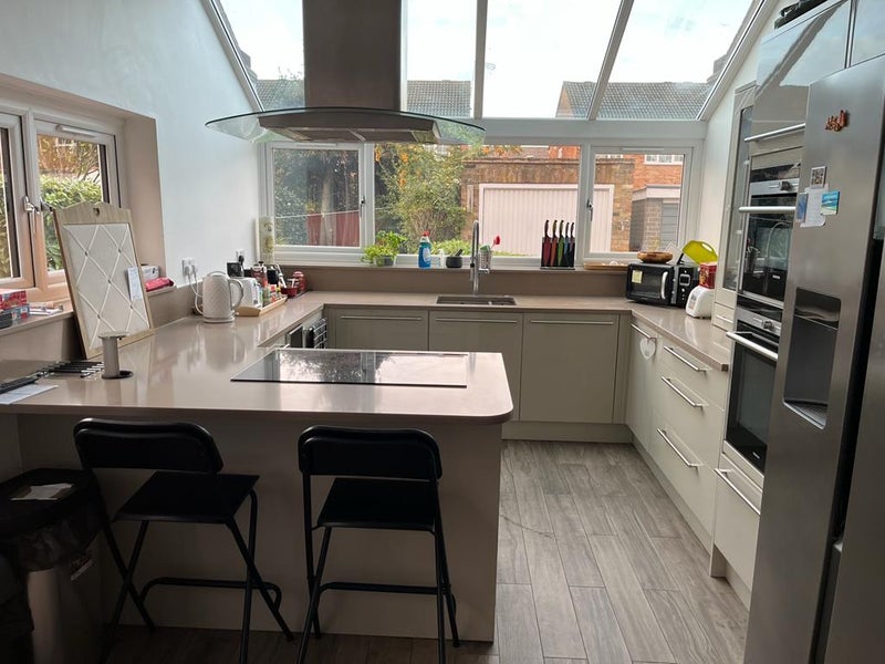 Bright , freshly painted double furnish room for rent in updated Victorian house only a 4 minute walk to the train station to Waterloo London. The huge open plan kitchen / diner on the ground floor makes this the heart of the house, with a built-in breakfast bar and stools included, as well as space for a dining table and chairs. The house has all modern amenities: Gas central heating, wine chiller, dishwasher, usb sockets, waste disposal, dual oven, American 'fridge, washing machine.