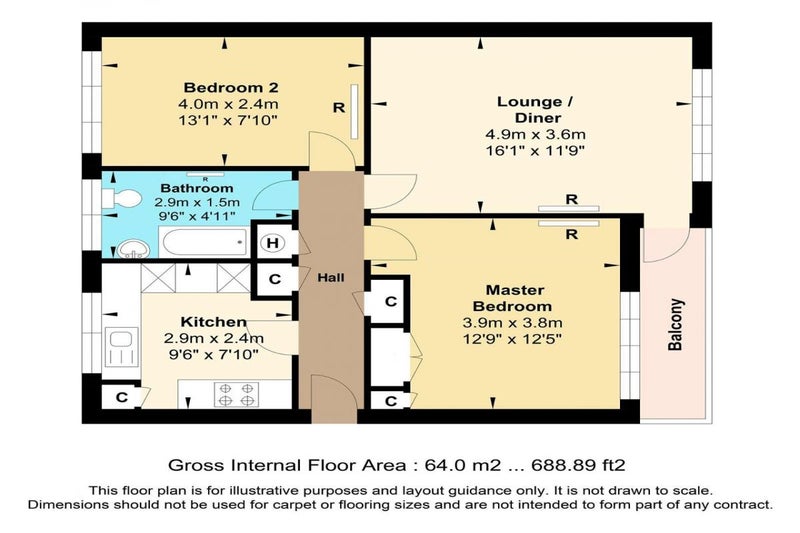 Medium double bedroom. Spacious ceilings, natural light, large living room, balcony and nice decent kitchen with storage.