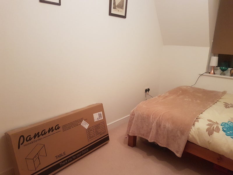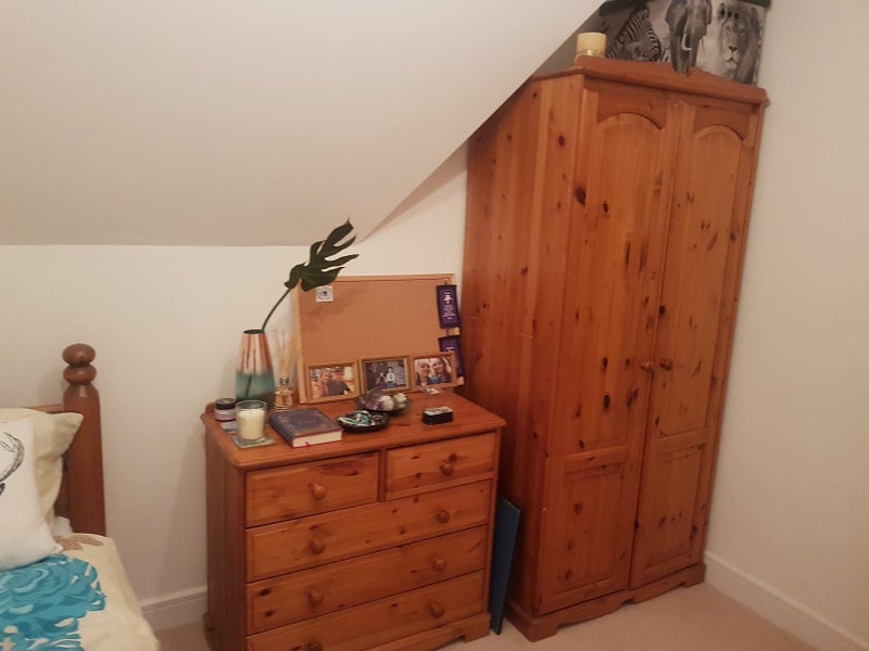 The room available is a good size, furnished with a double bed with storage space underneath, bedside table, wardrobe, a chest of draws.