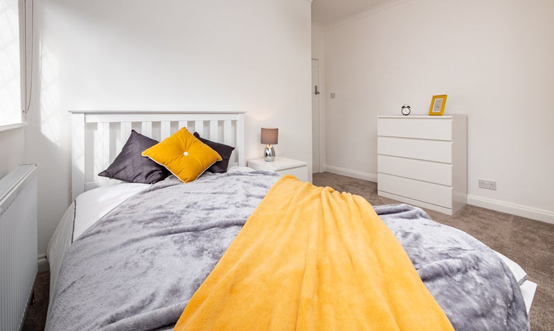 The double room we have available comes with Ottoman storage bed with luxury mattress, chest of drawers and a large floor to ceiling wardrobe.