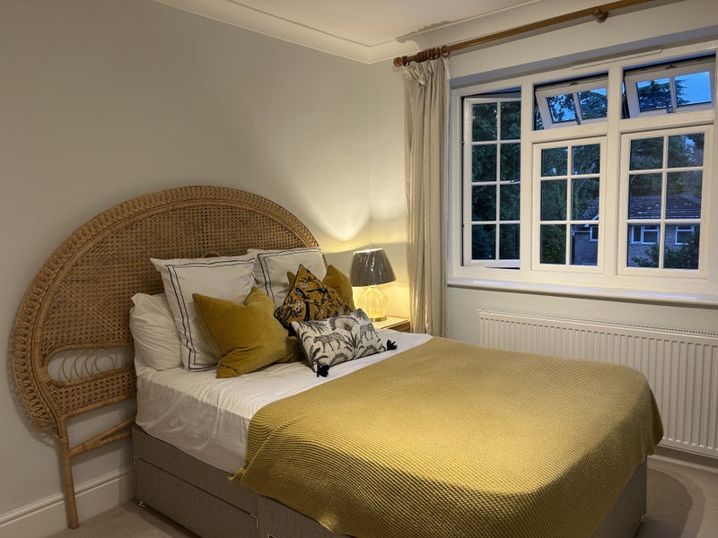The double bedroom offered is very cosy and elegant, newly furnished with new carpets, with sole use of family bathroom with bath/shower. Room is overlooking our garden and mature trees. The accommodation offered Monday to Friday only. No TV in the room, but we have one in the living room.