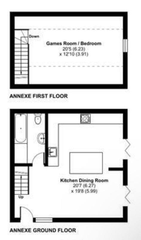 - Fully self-contained two-floor home (approx. 558 sq ft)