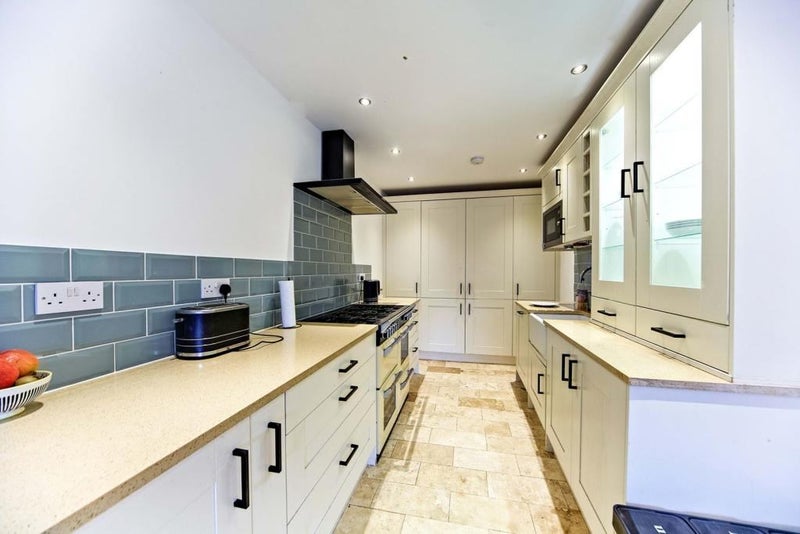 The property has been extended on the ground floor and there is a stunning open plan kitchen-living room area with doors leading out to the rear garden. The kitchen has cupboard space to both sides, space for a gas range cooker and integrated appliances.