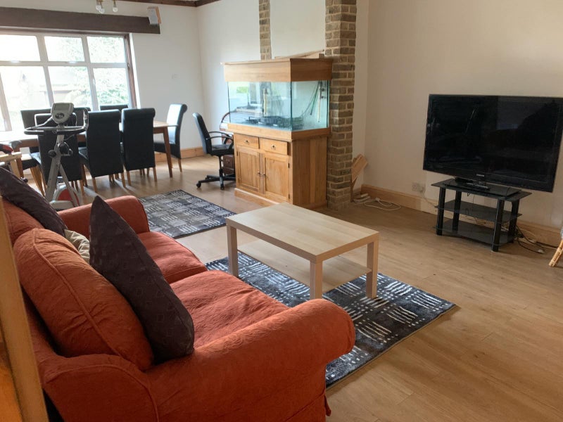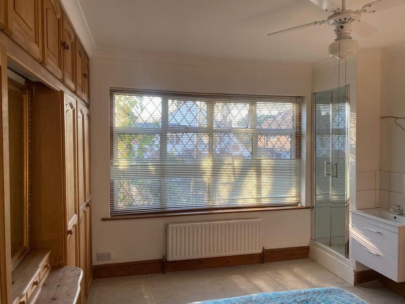 Double bed, large storage wardrobe & chest of drawers. Situated in a superb quiet residential road in North Cheam, with excellent transport links both east and west. 10 minutes bus ride from Morden underground station.