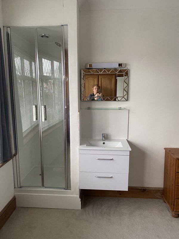 Large double room for single female in a large all female house. Plenty of storage in a lovely, quiet, friendly professional house. Fully furnished with own personal shower, vanity unit/sink and shared communal toilet.