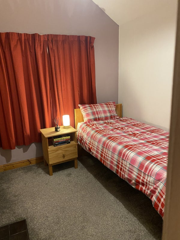 Large furnished single room available in a comfortable house. Shared bathroom adjacent to the room, with additional ground floor cloakroom. You would be welcome to use the kitchen and dining room.
