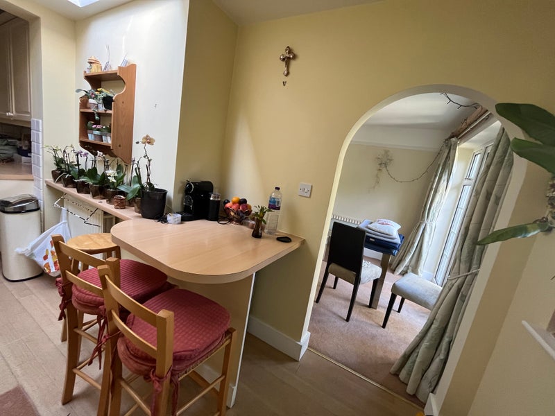 A spare double bedroom in a three-bedroom house is available for short- or long-term stays. Two females are currently living in the house. The property has everything you need for comfortable living. Ideally, you should have your own transport, as the 715/714 bus stop is about a 15-minute walk away, and Oxshott station is around a 30-minute walk.