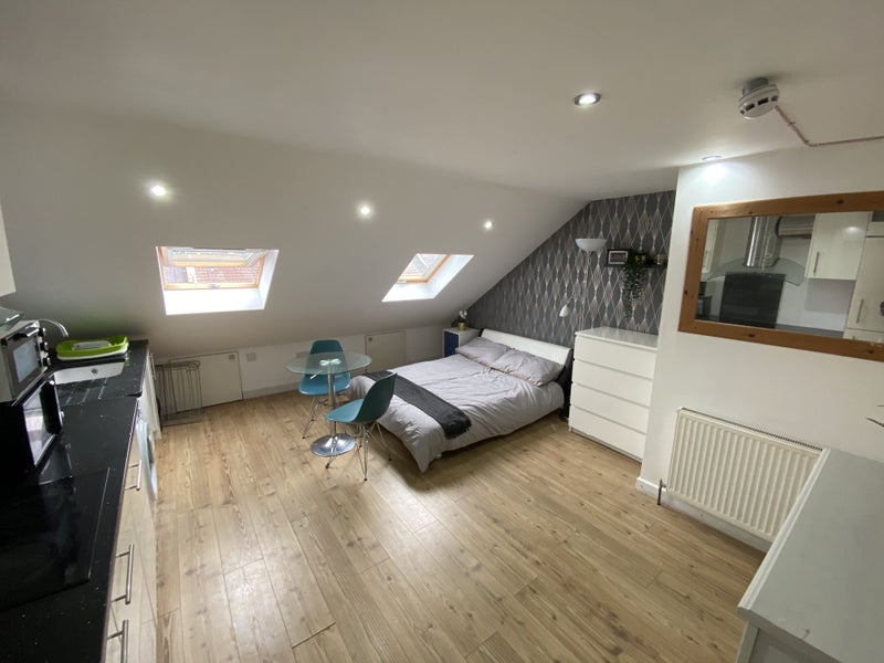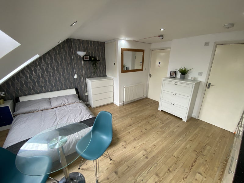 The Spacious Studio Flat with Laminated Wood flooring is FULLY FURNISHED, (Double Bed, Wardrobe, Chest of Drawers. It can be tailored to your requirements
