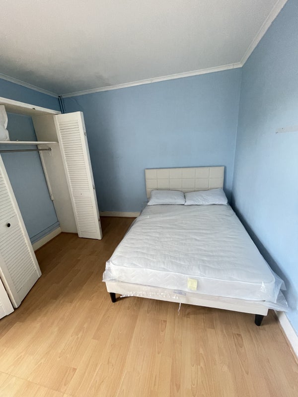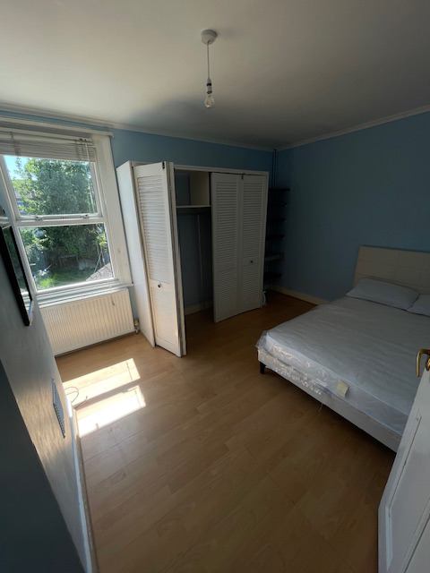 Spacious double room with brand new mattress, pillows, bedframe and an existing built-in closet. Room has a window overlooking the garden.