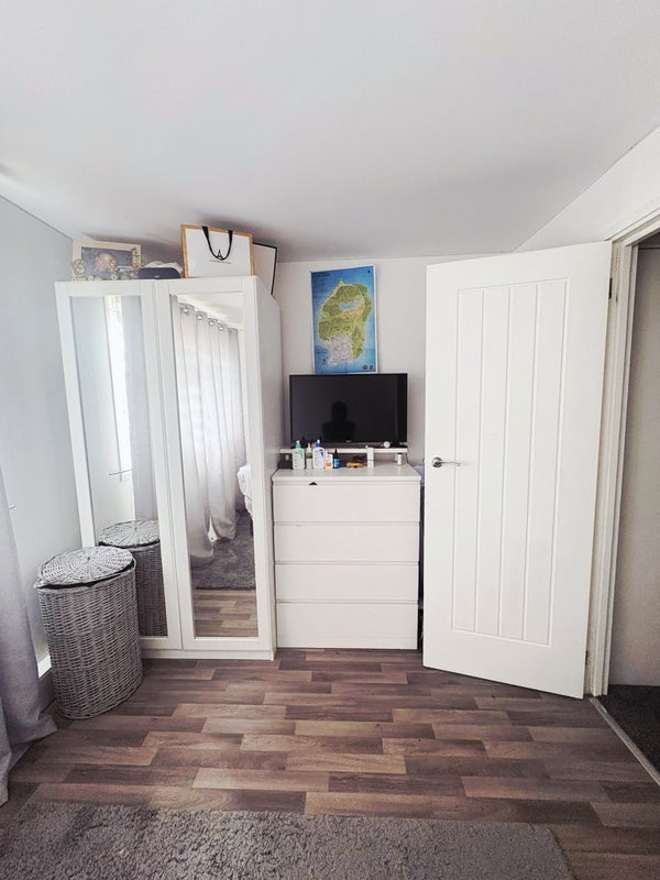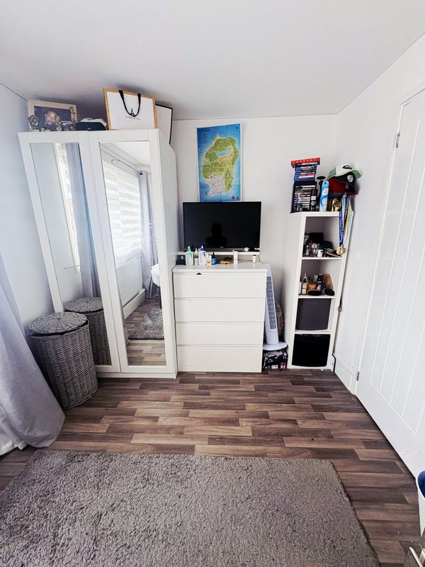 We are delighted to present this double room for a profession seeking a space to rent. This room comes complete with a double bed, double wardrobe, Chester drawers, bedside table, lamp and storage cupboard.