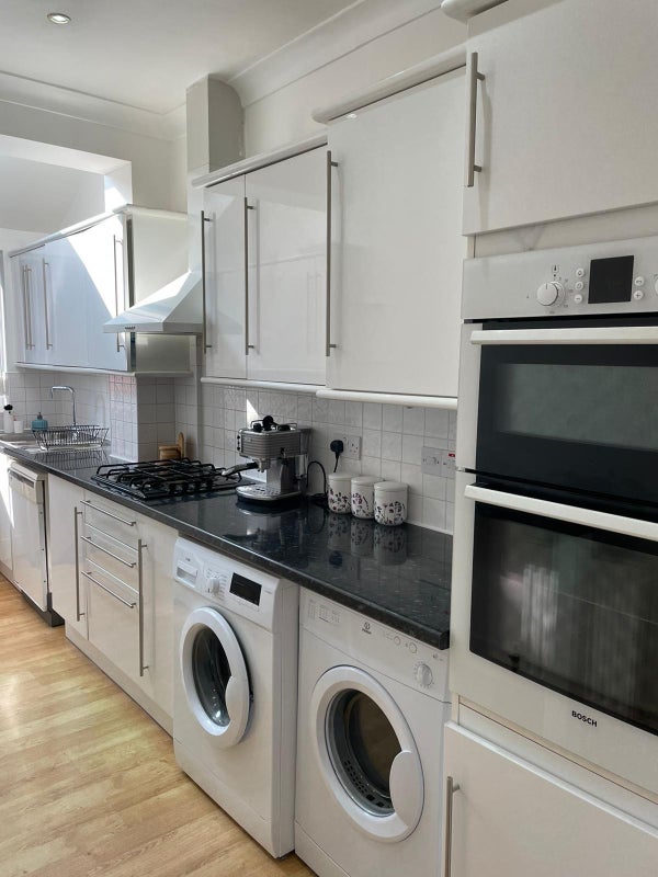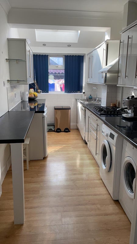 - Private very larg kitchen with oven, hob, washing machine & fridge freezer.