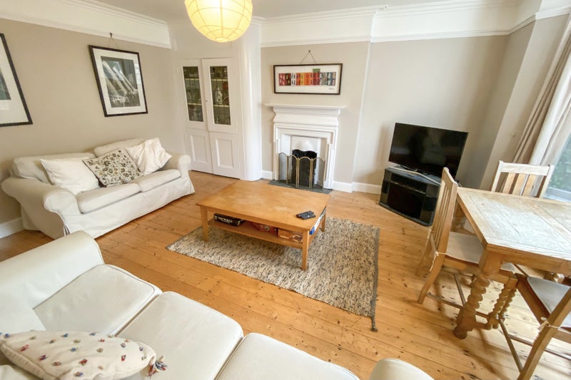 Ground floor garden flat, four bedrooms in total. Big lounge with wood floors and a dining table, fully equipped kitchen with washer and dryer, modern shower room and a separate WC. The garden at the back is a private Victorian walled garden, a real sun trap that is peaceful and a great size, perfect for enjoying the summer.