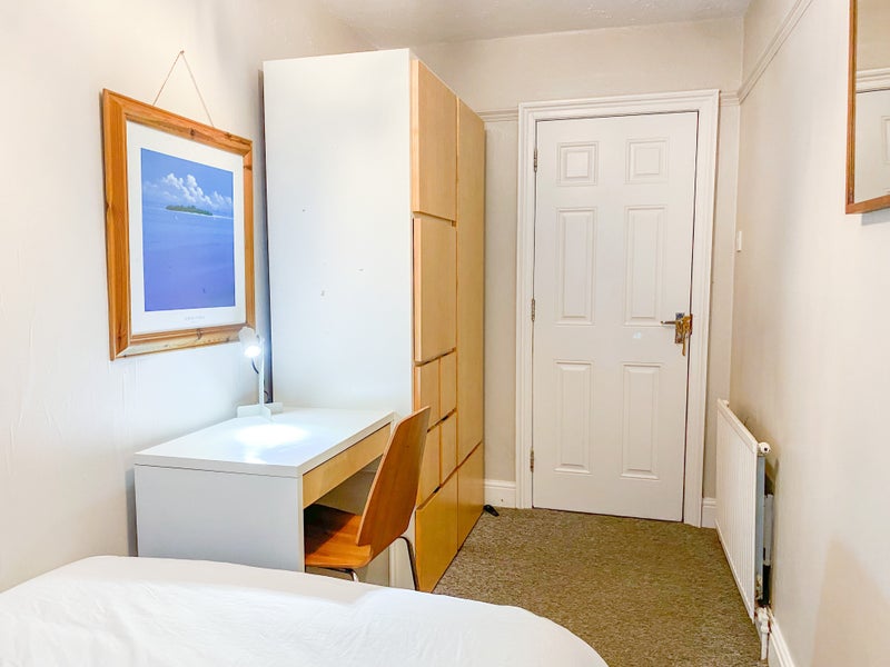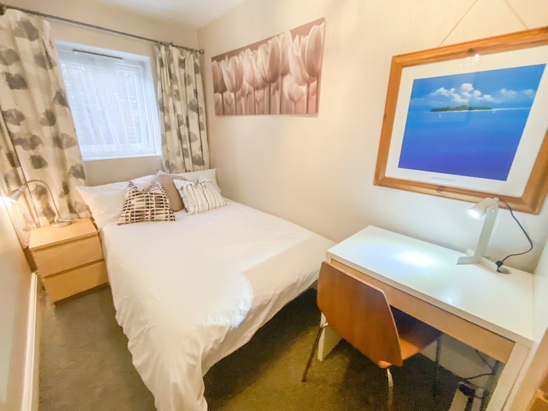 Fully furnished: double bed, large wardrobe, desk and chair, desk lamp, bedside table, mirror and pictures. It's ready to move straight into.