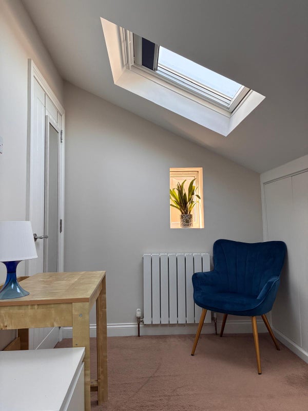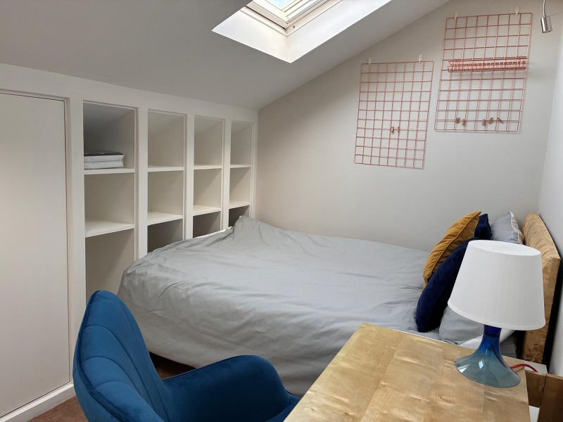 On offer is this beautiful cosy double bedroom with your own beautiful bathroom in a female house-share. The room boasts plenty of hidden storage (2 fitted double wardrobes), shelving, luxury carpets, small double bed, casual reading chair and desk.