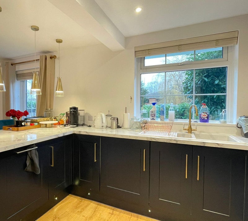 The house is newly refurbished with brand new appliances, all fitted within the last year. There are 3 bedrooms (each with an en-suite toilet + shower). The kitchen is brand new, with a dishwasher, washing machine and lots of cupboards. There is also a private garden and a driveway with a parking space .