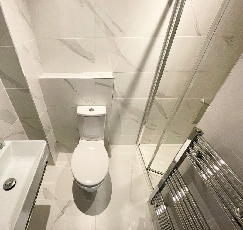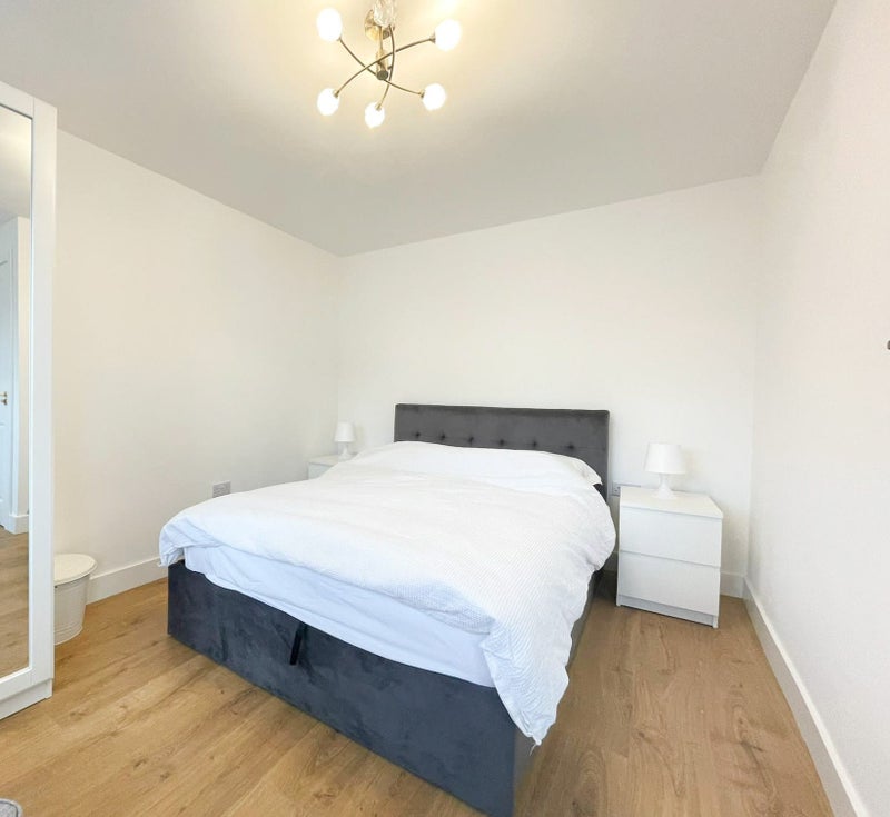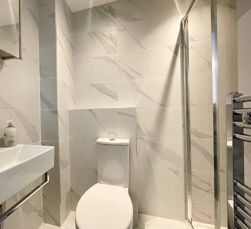 Your bedroom has a double bed with side tables on each end and 2 lamps, a mattress, desk, office chair, modern wardrobes with mirrors, a recliner chair and an en-suite shower room. There is plenty of storage space in the spacious wardrobes, as well as extra wall space if you need more storage. There are also 2 windows with blinds so you have plenty of natural light