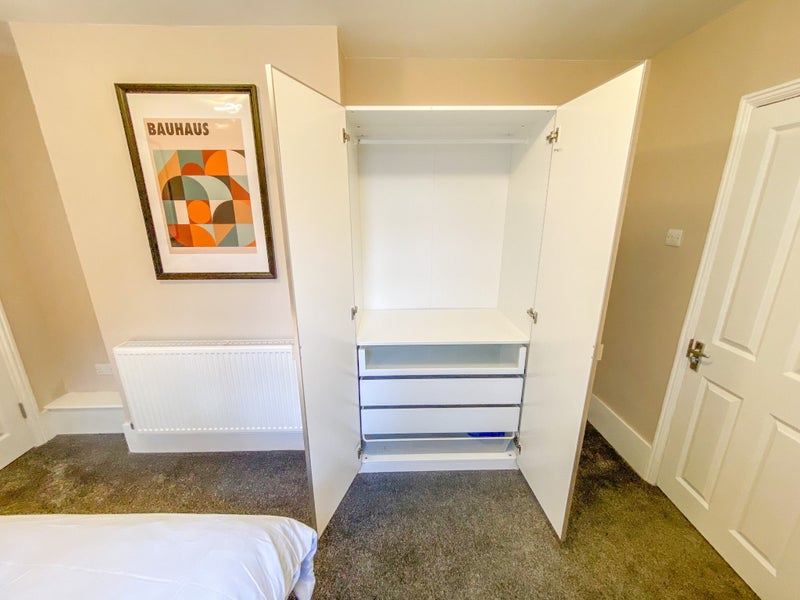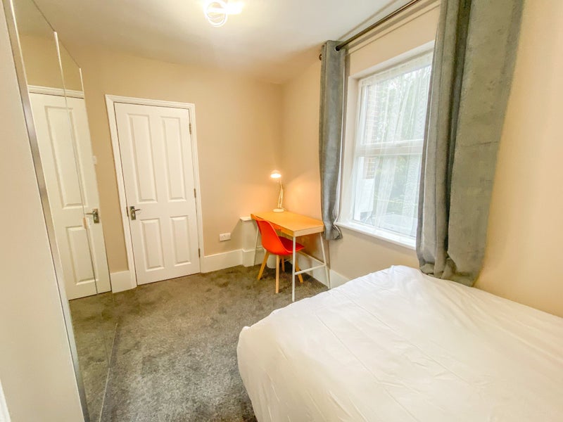 ✅ Fully Furnished – Includes a double bed with a new high-quality mattress, a large mirrored wardrobe, a desk with a chair (ideal for WFH), a bedside table, and a desk lamp.