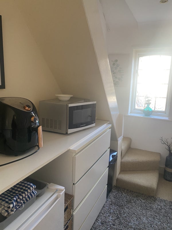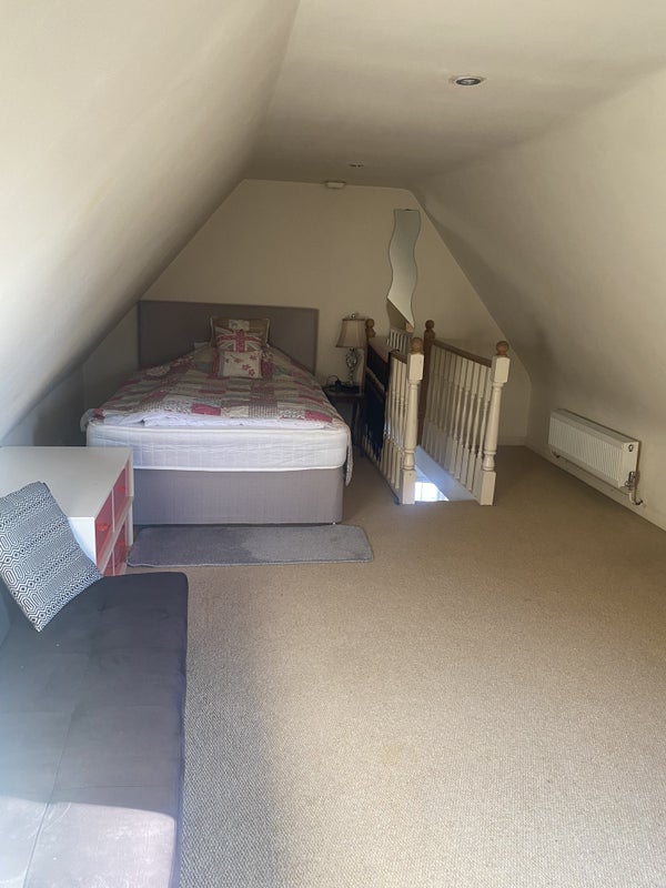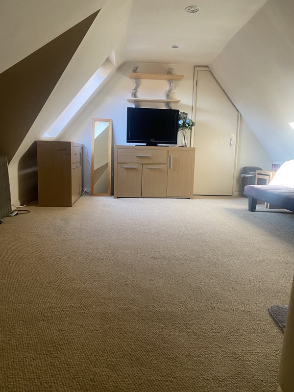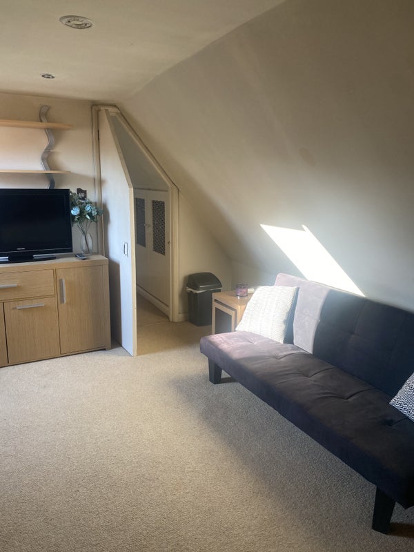 A self-contained flat bedsit in a big house. Bathroom, kitchen fully furnished, clean and very secure private parking for 1 car behind electric gates