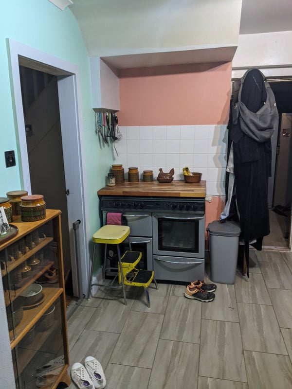 Shared bathroom, with a separate bath and walk in shower. Shared kitchen with a gas range cooker (gas is best), dinning room and sitting room.