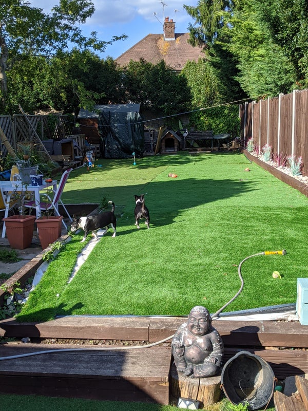 Very large garden, with outside seating, BBQ and a boxing training area, boxing man, ropes, weights etc.