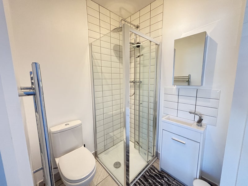 Private en-suite with shower, toilet, and sink